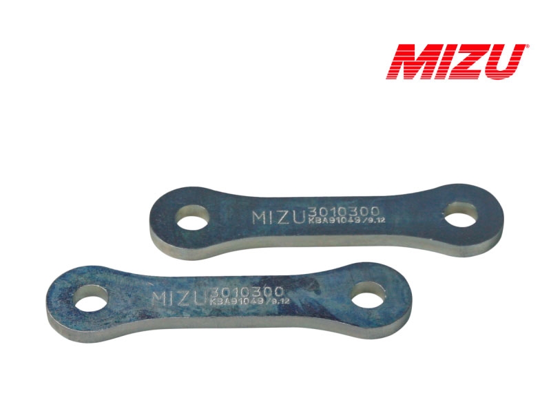 Kit aumento de altura Mizu 3010300. Kit de suspensión Mizu 3010300 que permite subir la suspensión. Realizado con materiales de alta calidad, el kit Mizu cuenta con garantía de 3 años. Con los kits de suspensión para moto Mizu podrás bajar o subir la altura de tu moto sin que por ello tengas que modificar la geometría. Diseñados y fabricados en Alemania bajo las directrices de la ISO 9001 y con certificado de homologación europea TÜV. Para garantizar la compatibilidad del kit Mizu es necesario comprobar el Tipo especificado en la ficha técnica.