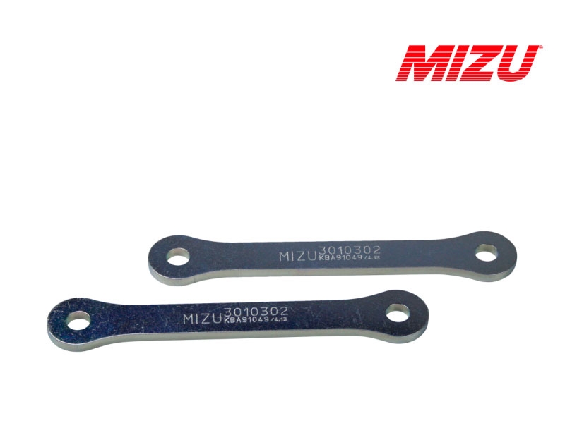 Kit aumento de altura Mizu 3010302. Kit de suspensión Mizu 3010302 que permite subir la suspensión. Realizado con materiales de alta calidad, el kit Mizu cuenta con garantía de 3 años. Con los kits de suspensión para moto Mizu podrás bajar o subir la altura de tu moto sin que por ello tengas que modificar la geometría. Diseñados y fabricados en Alemania bajo las directrices de la ISO 9001 y con certificado de homologación europea TÜV. Para garantizar la compatibilidad del kit Mizu es necesario comprobar el Tipo especificado en la ficha técnica.