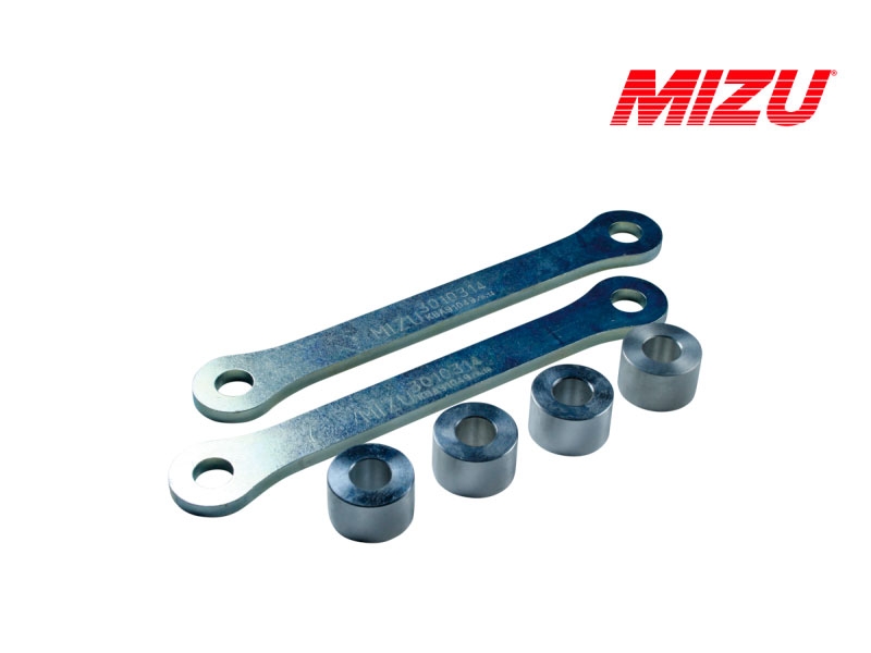 Kit aumento de altura Mizu 3010314. Kit de suspensión Mizu 3010314 que permite subir la suspensión. Realizado con materiales de alta calidad, el kit Mizu cuenta con garantía de 3 años. Con los kits de suspensión para moto Mizu podrás bajar o subir la altura de tu moto sin que por ello tengas que modificar la geometría. Diseñados y fabricados en Alemania bajo las directrices de la ISO 9001 y con certificado de homologación europea TÜV. Para garantizar la compatibilidad del kit Mizu es necesario comprobar el Tipo especificado en la ficha técnica.
