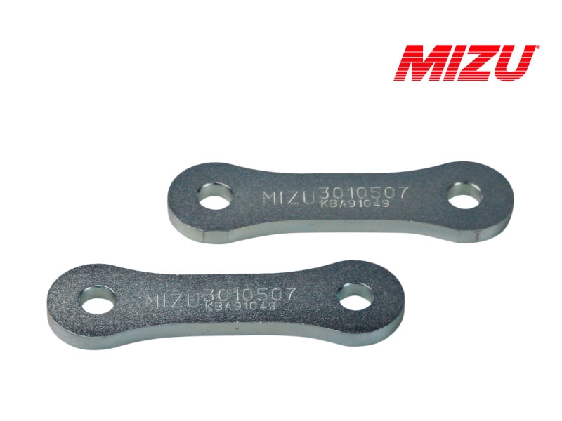 Kit aumento de altura Mizu 3010507. Kit de suspensión Mizu que permite subir la suspensión. Realizado con materiales de alta calidad, el kit Mizu cuenta con garantía de 3 años. Con los kits de suspensión para moto Mizu podrás bajar o subir la altura de tu moto sin que por ello tengas que modificar la geometría. Diseñados y fabricados en Alemania bajo las directrices de la ISO 9001 y con certificado de homologación europea TÜV. Para garantizar la compatibilidad del kit Mizu es necesario comprobar el Tipo especificado en la ficha técnica.
