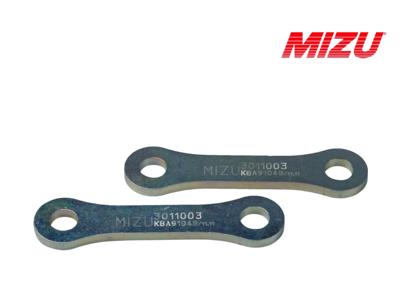 Kit aumento de altura Mizu 3011003. Kit de suspensión Mizu 3011003 que permite subir la suspensión. Realizado con materiales de alta calidad, el kit Mizu cuenta con garantía de 3 años. Con los kits de suspensión para moto Mizu podrás bajar o subir la altura de tu moto sin que por ello tengas que modificar la geometría. Diseñados y fabricados en Alemania bajo las directrices de la ISO 9001 y con certificado de homologación europea TÜV. Para garantizar la compatibilidad del kit Mizu es necesario comprobar el Tipo especificado en la ficha técnica.