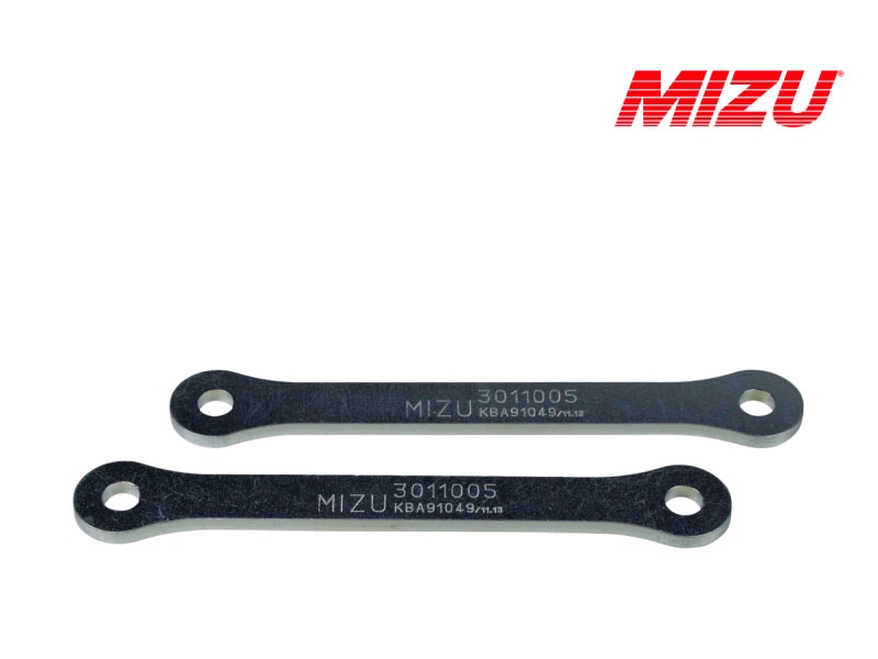 Kit aumento de altura Mizu 3011005. Kit de suspensión Mizu 3011005 que permite subir la suspensión. Realizado con materiales de alta calidad, el kit Mizu cuenta con garantía de 3 años. Con los kits de suspensión para moto Mizu podrás bajar o subir la altura de tu moto sin que por ello tengas que modificar la geometría. Diseñados y fabricados en Alemania bajo las directrices de la ISO 9001 y con certificado de homologación europea TÜV. Para garantizar la compatibilidad del kit Mizu es necesario comprobar el Tipo especificado en la ficha técnica.