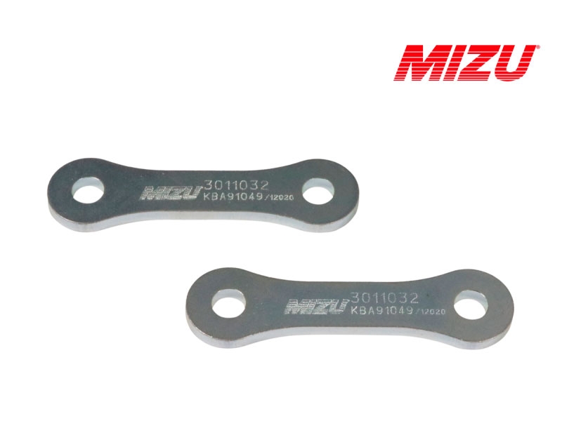 Kit aumento de altura Mizu 3011032 Triumph Tiger 900 >20 +30mm. Kit de suspensión Mizu 3011032 que permite subir la suspensión. Realizado con materiales de alta calidad, el kit Mizu cuenta con garantía de 3 años. Con los kits de suspensión para moto Mizu podrás bajar o subir la altura de tu moto sin que por ello tengas que modificar la geometría. Diseñados y fabricados en Alemania bajo las directrices de la ISO 9001 y con certificado de homologación europea TÜV. Para garantizar la compatibilidad del kit Mizu es necesario comprobar el Tipo especificado en la ficha técnica.