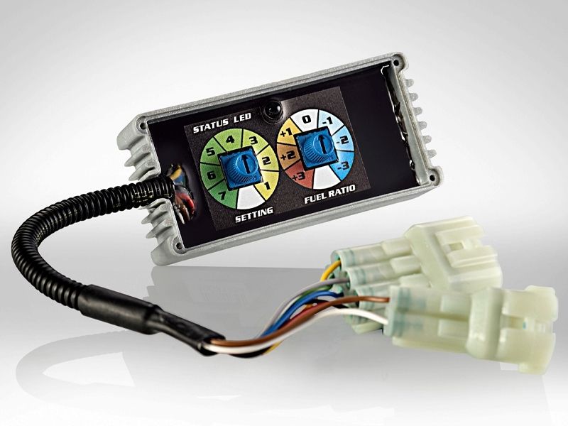 Lo único que tienes que hacer ahora es calibrar la unidad de control Rapid Bike Easy: una operación muy sencilla (gracias a 2 reguladores de fácil acceso) en los que no es necesario utilizar ningún software adicional. La unidad de control Rapid Bike Easy puede controlar hasta 2 sondas lambda y está indicada especialmente para motocmotocicletas totalmente de serie. Su estándar de fabricación es específico para el sector de automoción y cumple con los criterios mas importantes, como compatibilidad electromagnética, resistencia al choque / vibración, variación de la temperatura y agentes atmosféricos (tecnología a prueba de agua, etc.).