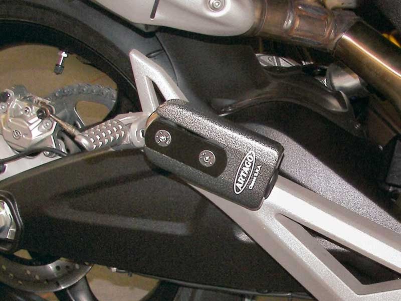 Kit integración Artago K100MONS. El Kit de integración Artago K100MONS permite colocar el antirrobo 69T/B /69 X para un transporte más cómodo. Los kits cuentan con un sistema de silenblocks anti-vibración que le permiten transportar el antirrobo de máxima seguridad, sin ningún tipo de ruidos ni holguras. Una solución muy práctica para el motorista que le facilita el día a día. Sistema de anclaje muy sencillo de instalar.