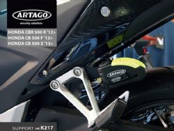 Kit Integración Artago K217 Antirrobo 32 / 32X. El Kit de integración Artago K217 permiten colocar el antirrobo 32 / 32X en el lugar más apropiado para su transporte. Los kits cuentan con un sistema de silenblocks anti-vibración que le permiten transportar el antirrobo de máxima seguridad, sin ningún tipo de ruidos ni holguras. Una solución muy práctica para el motorista que le facilita el día a día. Sistema de anclaje muy sencillo de instalar.