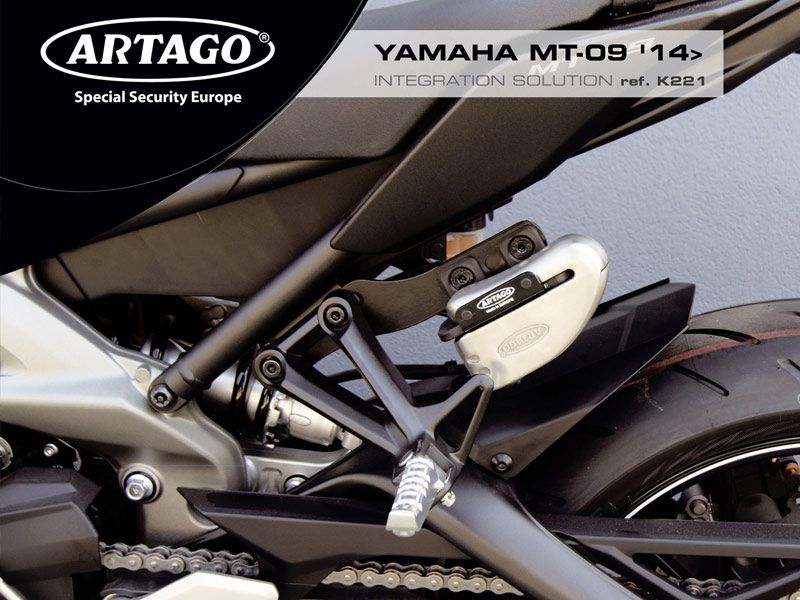 Kit integración Artago K221. El Kit de integración Artago K221 permiten colocar el antirrobo 32 / 32X en la Yamaha MT-09 para transportarlo más cómodamente. Los kits cuentan con un sistema de silenblocks anti-vibración que le permiten transportar el antirrobo de máxima seguridad, sin ningún tipo de ruidos ni holguras. Una solución muy práctica para el motorista que le facilita el día a día. Sistema de anclaje muy sencillo de instalar.