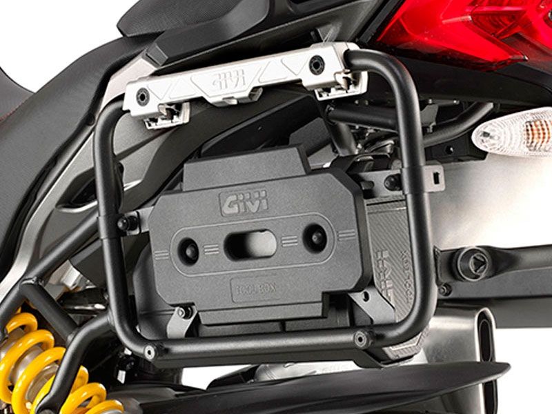 - Ducati Multistrada 950 2017 con portamaletas Givi PLR7406CAM y posición en el lado izquierdo.