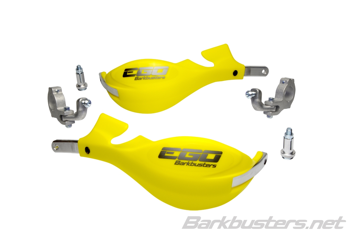 Kit paramanos Barkbusters EGO EGO-005-YE manillar 28.6mm amarillo. Se trata de uno de los paramanos más exitosos del fabricante Barkbusters. Los paramanos universales EGO están especialmente diseñados para motos de enduro y trail. Los EGO disponen de una estructura de aluminio compacta y envolvente con protectores de plástico integrados y fácilmente reemplazables. Ofrecen una óptima protección contras los impactos, gracias a su sistema de fijación a través de 2 puntos. Los legendarios EGO han demostrado ser uno de los protectores de mano más resistentes y duraderos del mundo.