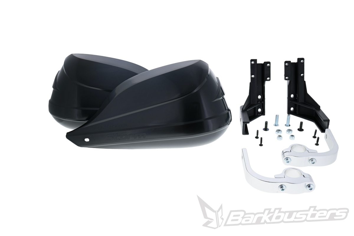 Kit paramanos Barkbusters Storm STM-001-BK manillar 22mm negro. Los paramanos Barkbusters Storm universales son ideales para ser montados en motos street, adventure, cruiser, atv y scooters. Estos cubremanos poseen un estilizado diseño que a su vez ofrece una excelente protección contra las inclemencias meteorológicas. Se suministra el kit completo con paramanos y kit de fijación.