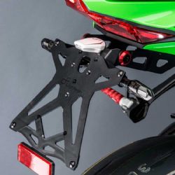 Portamatrículas regulable con catadrióptico y luz de matrícula LT009 Lightech KTARKA121A3 Sujeción para intermitentes originales Negro Kawasaki ZX 10 R 2016-2020 (montaje solo con intermitentes racing). Kit portamatrículas para moto regulable Lightech KTARKA121A3 con luz de matrícula incluida homologada y catadióptrico homologado. El kit portamatrículas regulable Lightech KTARxxxxA3 es la opción más completa para mejorar la estética de tu moto con un diseño compacto, deportivo y de alta calidad. Este kit incluye todo lo necesario para la instalación: soporte regulable, luz de matrícula Python LT009 y catadióptrico, además de los herrajes específicos.