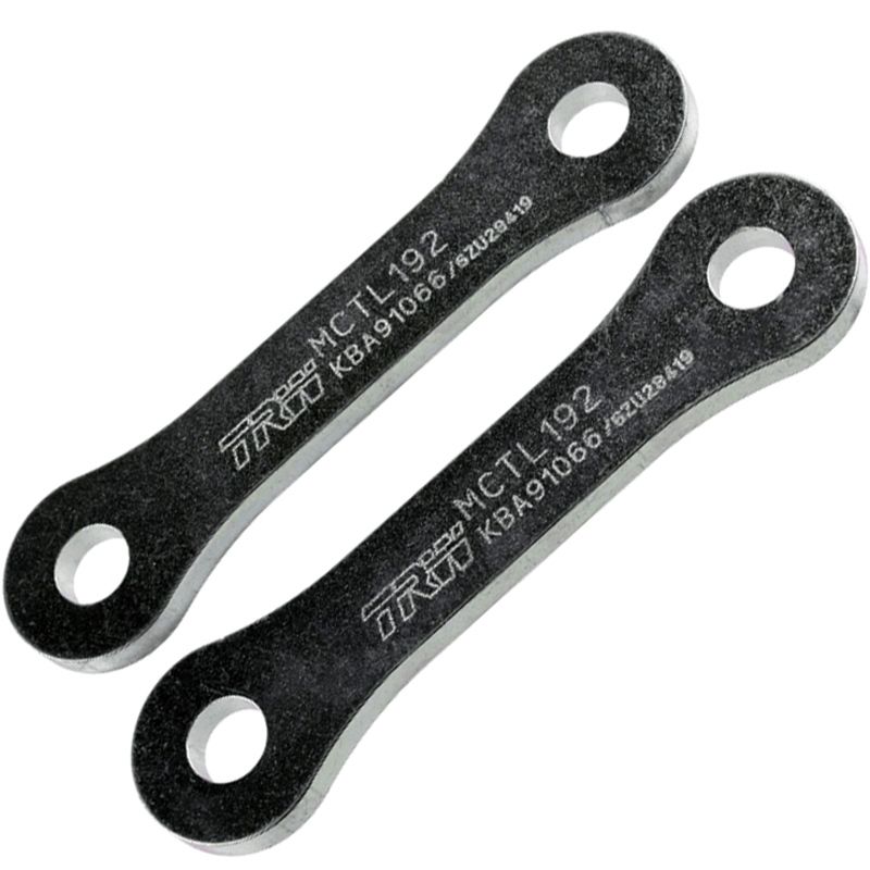 Kit reducción altura TRW MCTL192. Los kits TRW para la reducción de altura de la suspensión permiten bajar el asiento algunos centímetros, lo cual facilita enormemente el día a día del motorista. Los kits de reducción de TRW son sin duda una forma económica de reducir la altura de la moto en la parte trasera. Con el kit TRW podrás sustituir las piezas originales del sistema de suspensión por las piezas modificadas que a su vez son de la más alta calidad. En función del modelo de moto, las piezas son de acero inoxidable de alta calidad cortadas con láser o piezas de aluminio fresadas con tecnología CNC. Las robustas piezas garantizan la seguridad, y cuentan con certificado de conformidad (TÜV). La imagen mostrada puede ser genérica (en algunos casos) y siempre prevalecerá la referencia y compatibilidad del producto.