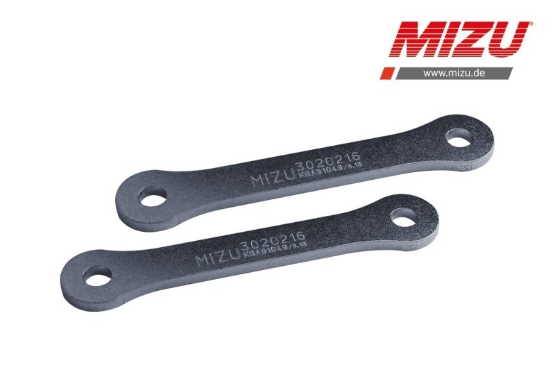 Kit reducción de altura Mizu 3020216. Kit de suspensión Mizu 3020216 que permite bajar la suspensión. Realizado con materiales de alta calidad, el kit Mizu cuenta con garantía de 10 años. Con los kits de suspensión para moto Mizu podrás bajar o subir la altura de tu moto sin que por ello tengas que modificar la geometría. Diseñados y fabricados en Alemania bajo las directrices de la ISO 9001 y con certificado de homologación europea TÜV. Para garantizar la compatibilidad del kit Mizu es necesario comprobar el Tipo especificado en la ficha técnica.