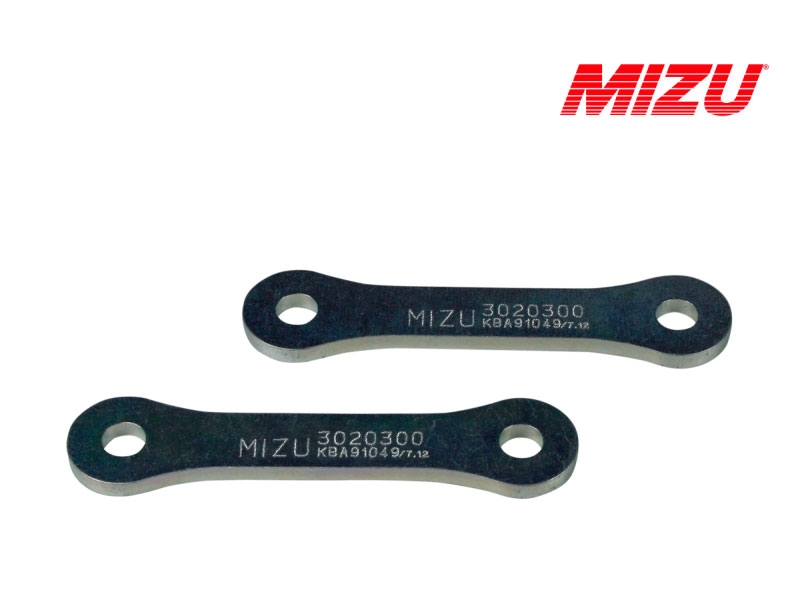 Kit reducción de altura Mizu 3020300. Kit de suspensión Mizu 3020300 que permite bajar la suspensión. Realizado con materiales de alta calidad, el kit Mizu cuenta con garantía de 3 años. Con los kits de suspensión para moto Mizu podrás bajar o subir la altura de tu moto sin que por ello tengas que modificar la geometría. Diseñados y fabricados en Alemania bajo las directrices de la ISO 9001 y con certificado de homologación europea TÜV. Para garantizar la compatibilidad del kit Mizu es necesario comprobar el Tipo especificado en la ficha técnica.