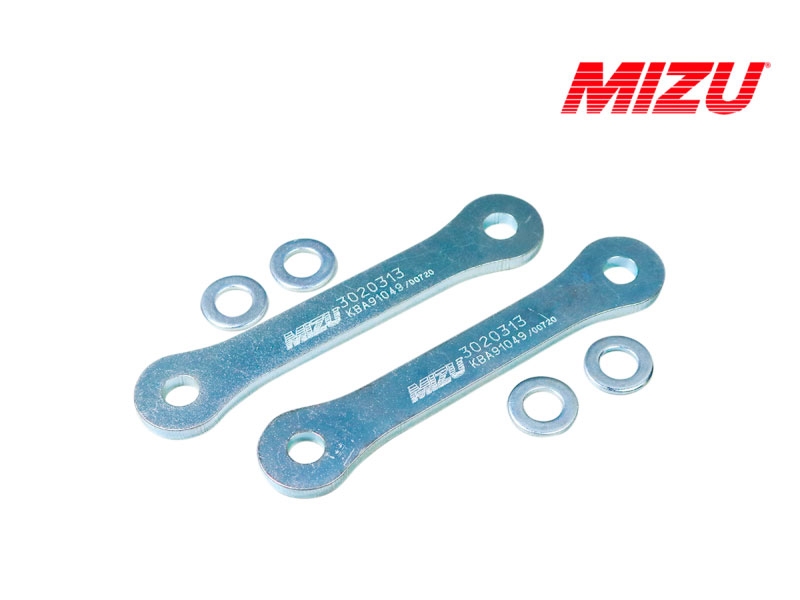 Kit reducción de altura Mizu 3020313. Kit de suspensión Mizu 3020313 que permite bajar la suspensión. Realizado con materiales de alta calidad, el kit Mizu cuenta con garantía de 3 años. Con los kits de suspensión para moto Mizu podrás bajar o subir la altura de tu moto sin que por ello tengas que modificar la geometría. Diseñados y fabricados en Alemania bajo las directrices de la ISO 9001 y con certificado de homologación europea TÜV. Para garantizar la compatibilidad del kit Mizu es necesario comprobar el Tipo especificado en la ficha técnica.