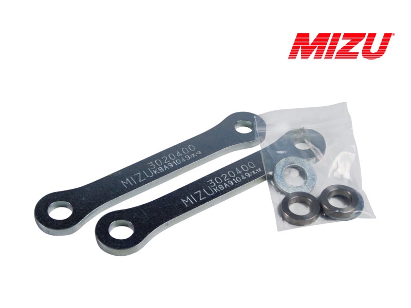 Kit reducción de altura Mizu 3020400. Kit de suspensión Mizu 3020400 que permite bajar la suspensión. Realizado con materiales de alta calidad, el kit Mizu cuenta con garantía de 3 años. Con los kits de suspensión para moto Mizu podrás bajar o subir la altura de tu moto sin que por ello tengas que modificar la geometría. Diseñados y fabricados en Alemania bajo las directrices de la ISO 9001 y con certificado de homologación europea TÜV. Para garantizar la compatibilidad del kit Mizu es necesario comprobar el Tipo especificado en la ficha técnica.