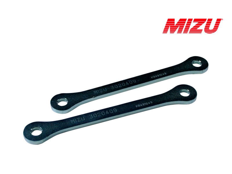 Kit reducción de altura Mizu 3020409. Kit de suspensión Mizu 3020409 que permite bajar la suspensión. Realizado con materiales de alta calidad, el kit Mizu cuenta con garantía de 3 años. Con los kits de suspensión para moto Mizu podrás bajar o subir la altura de tu moto sin que por ello tengas que modificar la geometría. Diseñados y fabricados en Alemania bajo las directrices de la ISO 9001 y con certificado de homologación europea TÜV. Para garantizar la compatibilidad del kit Mizu es necesario comprobar el Tipo especificado en la ficha técnica.