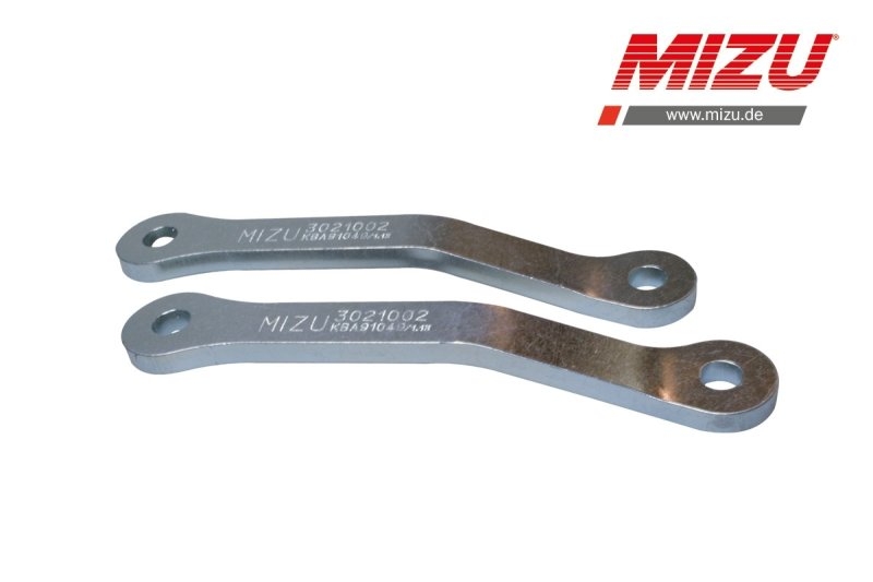Kit reducción de altura Mizu 3021002. Kit de suspensión Mizu 3021002 que permite bajar la suspensión. Realizado con materiales de alta calidad, el kit Mizu cuenta con garantía de 3 años. Con los kits de suspensión para moto Mizu podrás bajar o subir la altura de tu moto sin que por ello tengas que modificar la geometría. Diseñados y fabricados en Alemania bajo las directrices de la ISO 9001 y con certificado de homologación europea TÜV. Para garantizar la compatibilidad del kit Mizu es necesario comprobar el Tipo especificado en la ficha técnica.