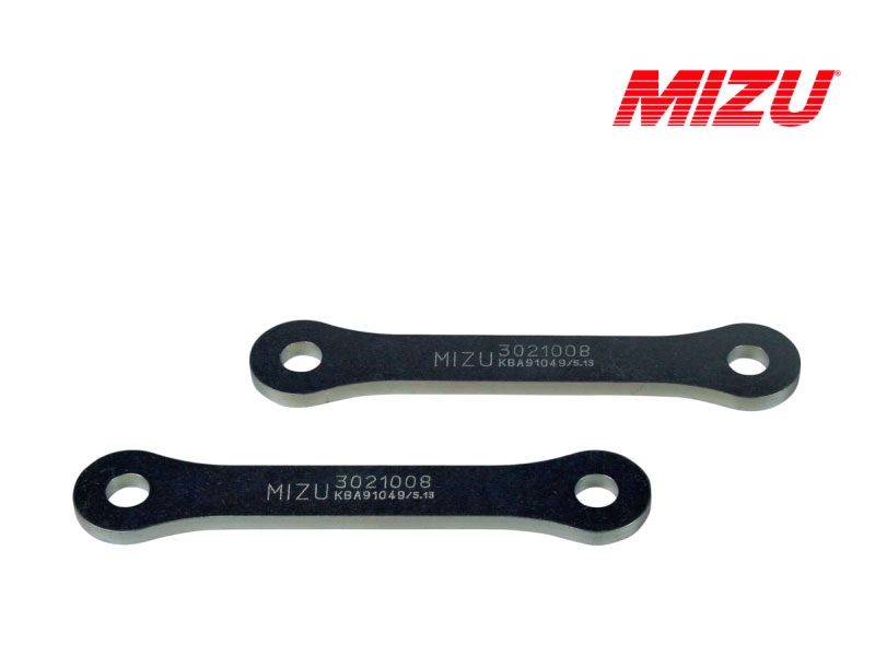 Kit reducción de altura Mizu 3021008. Kit de suspensión Mizu 3021008 que permite bajar la suspensión. Realizado con materiales de alta calidad, el kit Mizu cuenta con garantía de 10 años. Con los kits de suspensión para moto Mizu podrás bajar o subir la altura de tu moto sin que por ello tengas que modificar la geometría. Diseñados y fabricados en Alemania bajo las directrices de la ISO 9001 y con certificado de homologación europea TÜV. Para garantizar la compatibilidad del kit Mizu es necesario comprobar el Tipo especificado en la ficha técnica.