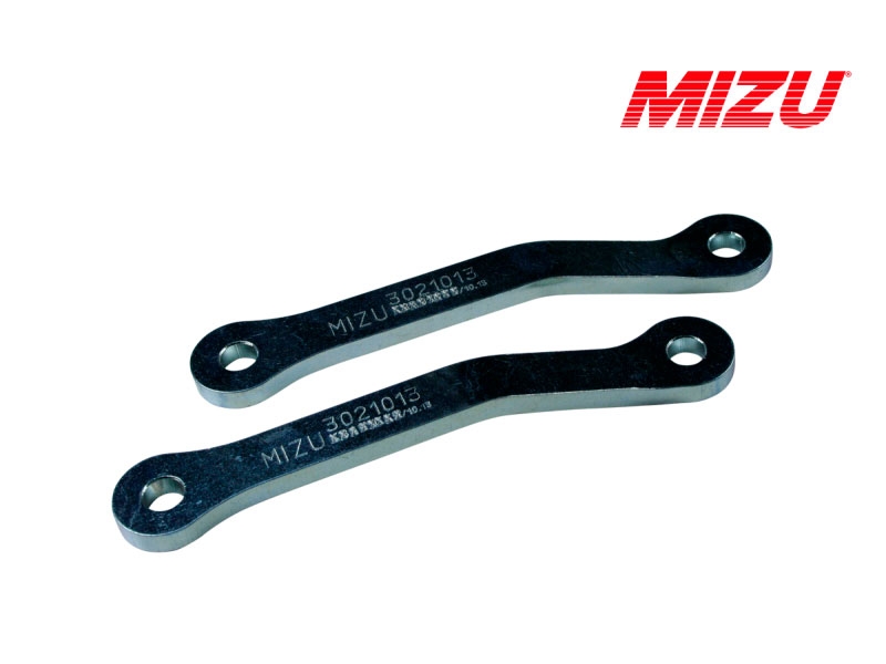 Kit reducción de altura Mizu 3021013. Kit de suspensión Mizu 3021013 que permite bajar la suspensión. Realizado con materiales de alta calidad, el kit Mizu cuenta con garantía de 3 años. Con los kits de suspensión para moto Mizu podrás bajar o subir la altura de tu moto sin que por ello tengas que modificar la geometría. Diseñados y fabricados en Alemania bajo las directrices de la ISO 9001 y con certificado de homologación europea TÜV. Para garantizar la compatibilidad del kit Mizu es necesario comprobar el Tipo especificado en la ficha técnica.