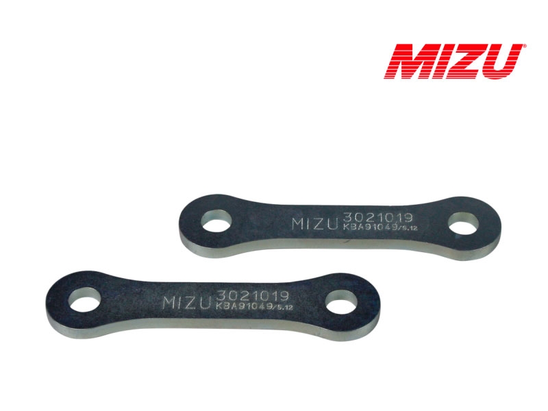 Kit reducción de altura Mizu 3021019. Kit de suspensión Mizu 3021019 que permite bajar la suspensión. Realizado con materiales de alta calidad, el kit Mizu cuenta con garantía de 3 años. Con los kits de suspensión para moto Mizu podrás bajar o subir la altura de tu moto sin que por ello tengas que modificar la geometría. Diseñados y fabricados en Alemania bajo las directrices de la ISO 9001 y con certificado de homologación europea TÜV. Para garantizar la compatibilidad del kit Mizu es necesario comprobar el Tipo especificado en la ficha técnica.