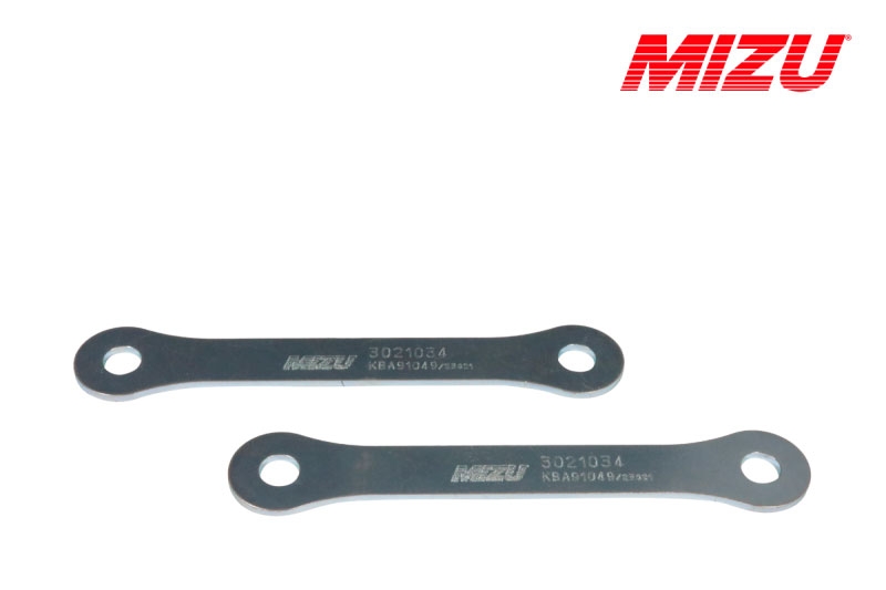 Kit reducción de altura Mizu 3021034. Kit de suspensión Mizu 3021034 que permite bajar la suspensión. Realizado con materiales de alta calidad, el kit Mizu cuenta con garantía de 3 años. Con los kits de suspensión para moto Mizu podrás bajar o subir la altura de tu moto sin que por ello tengas que modificar la geometría. Diseñados y fabricados en Alemania bajo las directrices de la ISO 9001 y con certificado de homologación europea TÜV. Para garantizar la compatibilidad del kit Mizu es necesario comprobar el Tipo especificado en la ficha técnica.