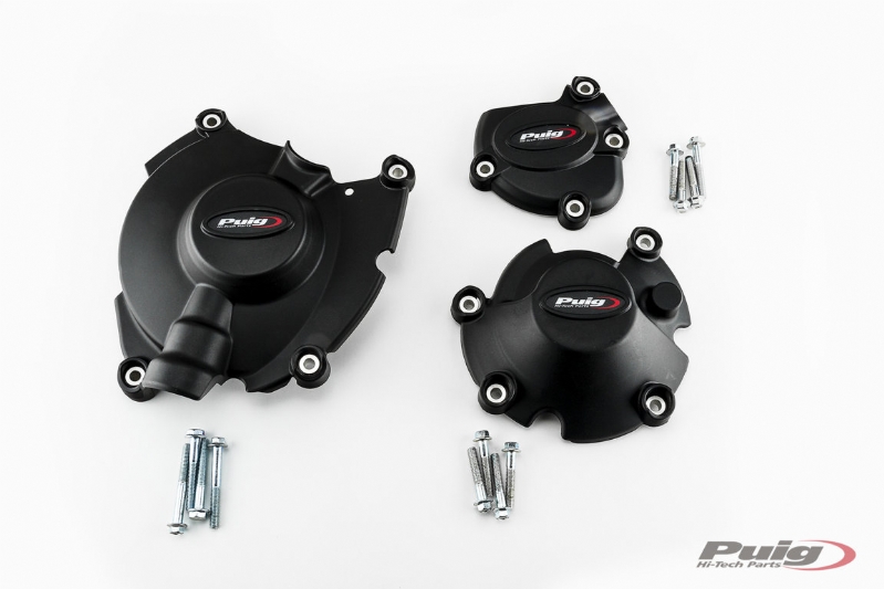 Kit tapas motor Puig 20127N Yamaha YZF-R1 2015-2019. Protege una de las partes más vulnerables de la motocicleta con los protectores para la tapa del motor Puig. Fabricados en polipropileno ultraligero de 4 mm, estas tapas garantizan una mayor durabilidad y resistencia de las tapas originales durante una caída. Fácil montaje sobre la propia tapa del motor original. Imagen genérica.