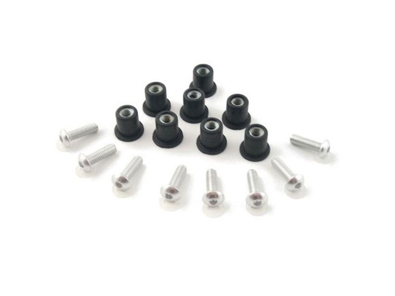 El kit de tornillería anodizada de puig para cúpulas, se compone de 8 tornillos de M5x16, 8 arandelas de plástico y 8 silenblocks negros. Precio kit. Disponible en 7 colores: dorado, azul, lila, negro, plata, rojo y verde.
