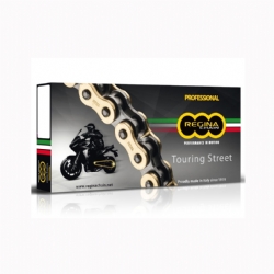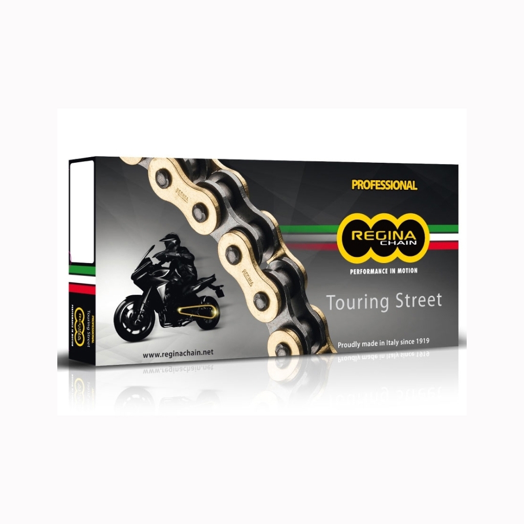 La cadena Regina ZRT es la elección preferida para motocicletas de carretera, siendo una de las más vendidas y utilizadas en el montaje de kits de transmisión. Diseñada para motos Touring y Street de hasta 1000cc, esta cadena está disponible en pasos 520, 525 y 530, asegurando compatibilidad con una amplia gama de modelos. La cadena Regina ZRT se destaca por su avanzada tecnología Z-Ring, que proporciona una excelente retención del lubricante y reduce la fricción, resultando en un funcionamiento más suave y una vida útil prolongada.