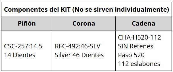 Además, los kits de arrastre Supersprox Performance Line están equipados con una cadena de calidad baja fricción que utiliza grasa japonesa de color blanco para reducir la fricción. Los piñones de los kits de arrastre Supersprox Performance Line, fabricados con acero S45C/3, garantizan dientes más fuertes y un exterior completamente mecanizado para una fiabilidad total. La calidad superior y el acabado impecable de cada kit de arrastre Supersprox Performance Line reflejan el compromiso de la marca con la excelencia, ofreciendo alta calidad y reconocimiento de marca a un precio más accesible, sin comprometer la calidad.