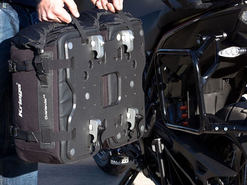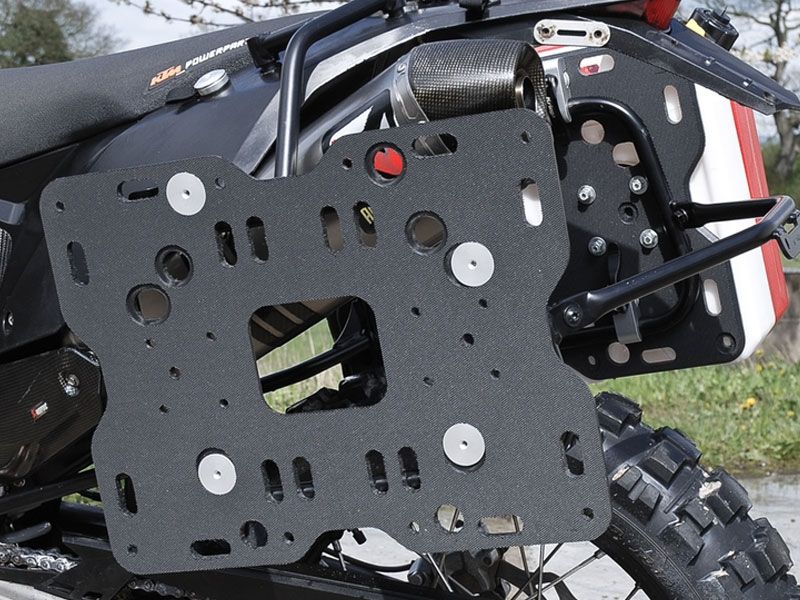 Plataforma Kriega ADV Plataform. Plataforma ADV para sujeción de bolsas exteriores o bidones. Diseño muy versátil compatible con la mayoría de soportes de maletas de moto con tubo de 18mm. Cierre con palomillas de ajuste. Fabricada en PVC y aluminio. Soportes no incluidos.