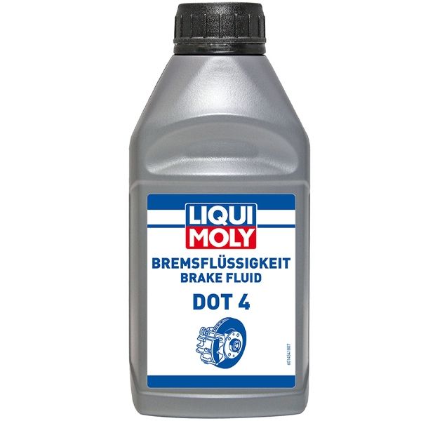Líquido frenos Liqui Moly DOT 4 500ml. Líquido de frenos Liqui Moly Brake Fluid sintético a base de glicol-éter, alquilopoliglicoles y ésteres de éter glicólico. Contiene inhibidores que impiden la corrosión de componentes de freno metálicos y reduce la oxidación a temperaturas elevadas. Esto impide que se formen productos de descomposición con ácido. Ha sido desarrollado especialmente para prolongar la vida útil de los componentes en los sistemas hidráulicos de frenos y de embrague de vehículos. Dispone de unos puntos de ebullición en húmedo y en seco elevados. Así, incluso tras humedecerse ligeramente, se garantiza un frenado seguro con una larga vida útil. Los detergentes especiales para humedad sirven para proteger contra la formación de burbujas de vapor.
