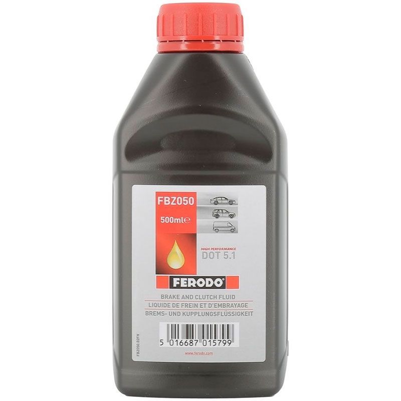 Líquido Frenos Ferodo Dot 5.1 Brake Fluid 0.5 Litros. Líquido de frenos Ferodo DOT 5.1, con composición a base de glicol-éter 100% sintético para sistemas de freno y embrague hidráulicos. Ferodo Dot 5.1 Brake Fluid ofrece muy baja viscosidad, lo que significa que es ideal para los sistemas de frenado ABS / ESP. La baja viscosidad hasta -40°C optimiza el rendimiento en todas las condiciones. Punto de ebullición seco 270 °C, húmedo 185 °C.