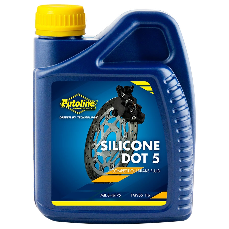 Líquido Frenos Putoline Dot 5 Silicon Brake Fluid 500 Ml. DOT 5 Silicon Brake Fluid es un líquido de frenos a base de silicona. Su rango de temperatura es muy amplio (entre -40 °C y +260 °C), lo que garantiza un funcionamiento óptimo del sistema de frenos. El producto prolonga la vida útil del sistema de frenos y no afecta al barniz ni a la pintura. DOT 5 Silicon Brake Fluid puede usarse de forma segura en sistemas de frenos y embrague hidráulicos de motocicletas (de competición) y en karts siempre que tengan un sellado resistente al líquido de frenos de silicona.