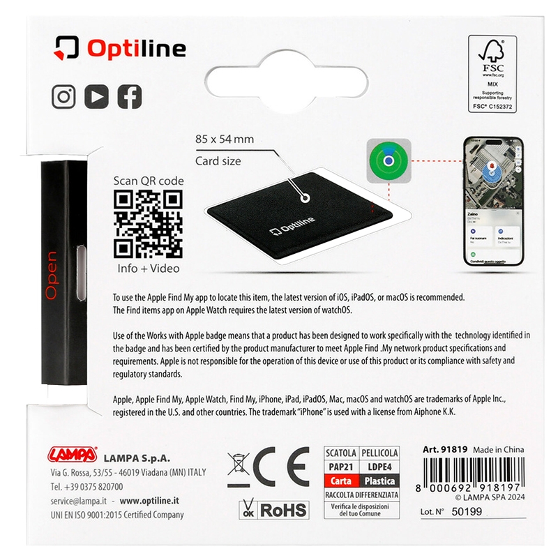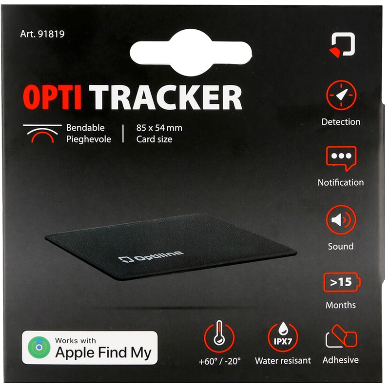Localizador Optiline Optitracker Flex 91819 pleagble ultradelgado. Optiline Optitracker Flex 91819 – Seguridad flexible y ultradelgada. El Optiline Optitracker Flex 91819 es un localizador plegable ultradelgado, diseñado para funcionar perfectamente con la aplicación "Find My" de Apple. Gracias a su diseño innovador y flexible, este dispositivo ofrece protección discreta y rastreo preciso, adaptándose a cualquier objeto sin ocupar espacio.