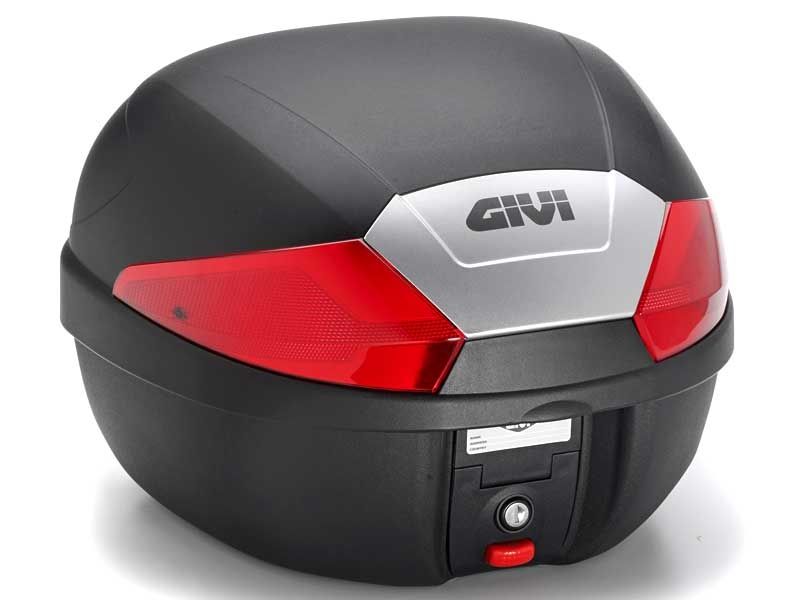 Maleta Givi B29N Monolock (Negro) con catadriópticos rojos. La nueva maleta Givi B29 Monolock ofrece un diseño muy actual además de unas medidas perfectas para adaptarse a motos de pequeña y mediana cilindrada. Cuenta con 29 litros de capacidad para albergar un casco modular y un diseño que incluye una base de fondo rígida para ofrecer un comportamiento excelente durante la conducción. La tapa superior de la maleta Givi B29 ha recibido una atención especial; se ha reducido su peso al mínimo con el objetivo de conseguir una maleta ligera pero no frágil. Incorpora el sistema de cierre Givi Micro 1 muy sencillo de utilizar. Incluye kit y parrilla universal. Dimensiones Givi B29: 407 mm (ancho) x 399 mm (profundo) x 309 mm (alto).
