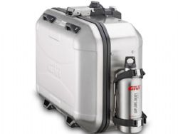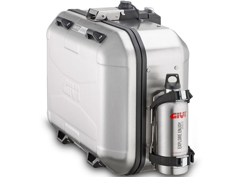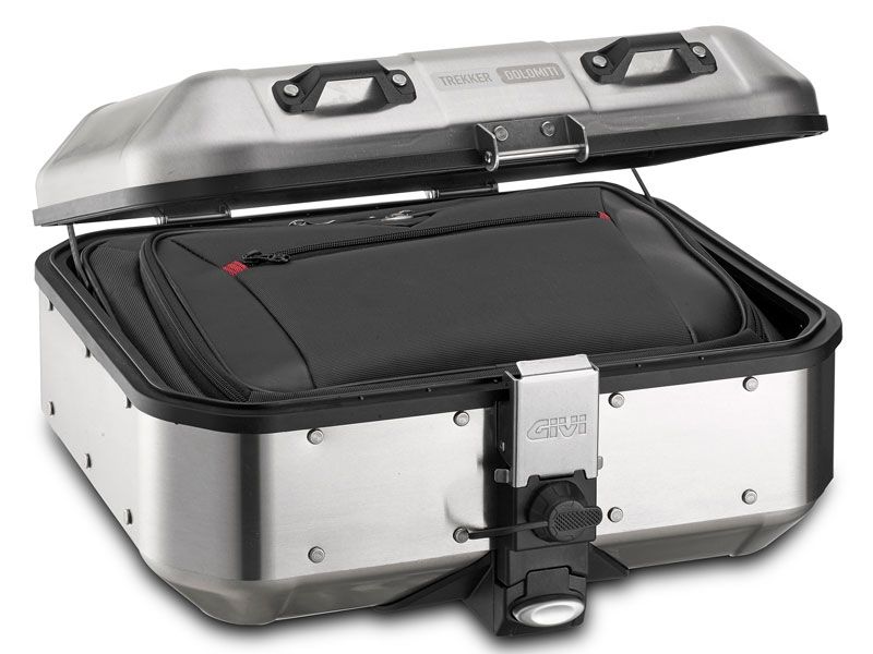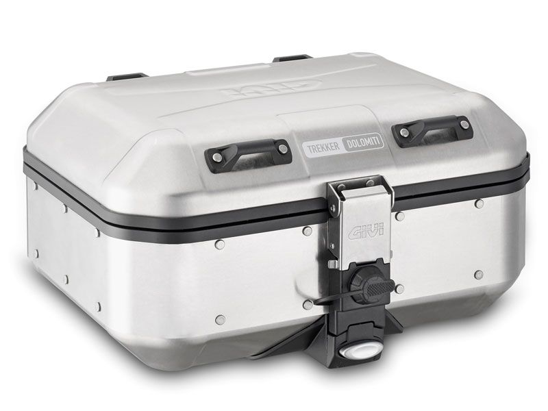 Maleta Givi Trekker Dolomiti DLM30. La nueva Givi Trekker Dolomiti DLM30 es muy funcional, gracias a que se puede colocar tanto en posición de maleta central como en posición de maleta lateral. Elegante y robusta, encaja a la perfección en motos maxi trail de última generación aunque es válida para todo tipo de motos. Con capacidad de 30 litros, está realizada en aluminio natural de 1,5 mm, fibra de vidrio y materiales plásticos de alta calidad para obtener como resultado final, una maleta ligera y de gran resistencia. Además posee una tapa con el fondo remachado en acero inox que le proporcionan excelente rigidez. Dispone de espacion interior para colocar una bolsa de ordenador de 15 pulgadas. Las cuatro abrazaderas de nylon sobre la tapa permiten la fijación de una bolsa con las correas Trekker Straps de Givi. Esta maleta es compatible con todos los kits de fijación con sistema de anclaje centrales Monokey y laterlaes PL y PLR (fijación rápida). El cierre Security Lock con tapón guadapolvo de serie permiten una apertura fácil y precisa, mientras que las gomas de alta calidad en el marco garantizan un cierre perfectamente sellado. El interior cuenta con una espuma acolchada. La maleta Givi Trekker Dolomiti dispone de una serie de accesorios opcionales que aumenta su funcionalidad. Carga máxima de 10 kilos. Medidas: 460 x 410 x 240 mm (Ancho x Profundo x Alto).