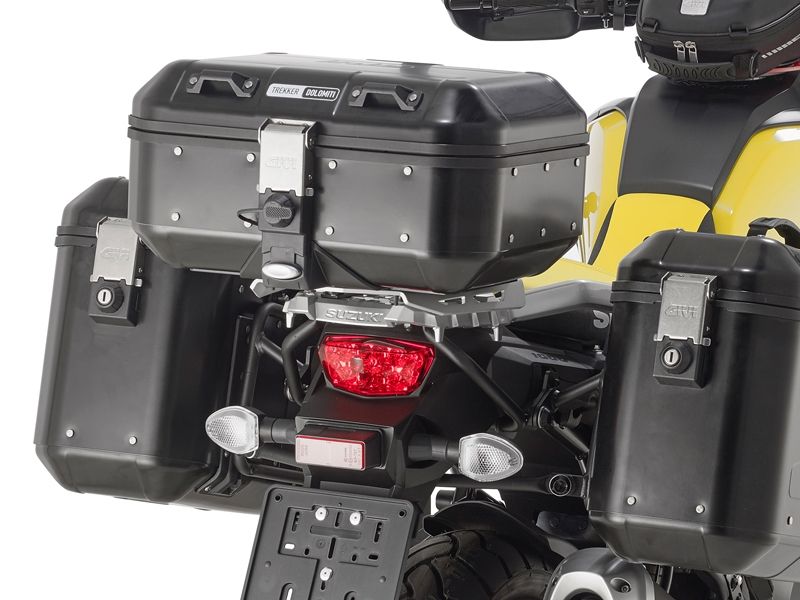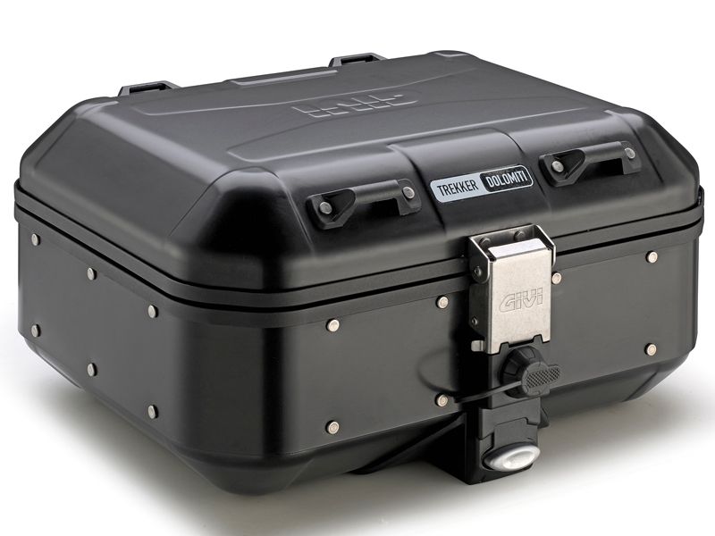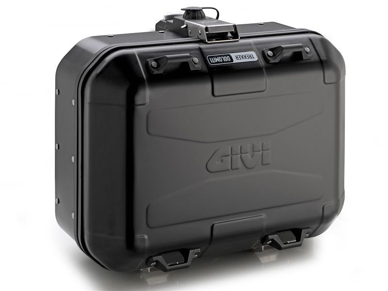 Maleta Givi DLM30B Trekker Dolomiti Black Line. La nueva Givi Trekker Dolomiti DLM30B es muy funcional, gracias a que se puede colocar tanto en posición de maleta central como en posición de maleta lateral. Elegante y robusta, encaja a la perfección en motos maxi trail de última generación aunque es válida para todo tipo de motos. Con capacidad de 30 litros, está realizada en aluminio natural de 1,5 mm, fibra de vidrio y materiales plásticos de alta calidad para obtener como resultado final, una maleta ligera y de gran resistencia. Además posee una tapa con el fondo remachado en acero inox que le proporcionan excelente rigidez. Dispone de espacion interior para colocar una bolsa de ordenador de 15 pulgadas. Las cuatro abrazaderas de nylon sobre la tapa permiten la fijación de una bolsa con las correas Trekker Straps de Givi. Esta maleta es compatible con todos los kits de fijación con sistema de anclaje centrales Monokey y laterlaes PL y PLR (fijación rápida). El cierre Security Lock con tapón guadapolvo de serie permiten una apertura fácil y precisa, mientras que las gomas de alta calidad en el marco garantizan un cierre perfectamente sellado. El interior cuenta con una espuma acolchada. La maleta Givi Trekker Dolomiti dispone de una serie de accesorios opcionales que aumenta su funcionalidad. Carga máxima de 10 kilos. Medidas: 460 x 410 x 240 mm (Ancho x Profundo x Alto).
