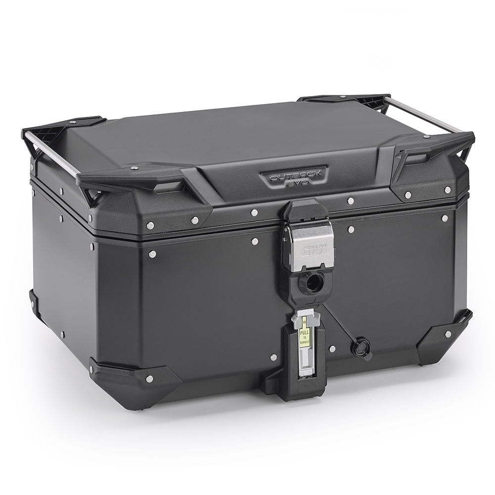 Maleta Givi OBKEV58B Trekker Outback EVO Smart 58L Aluminio Black Line. Maleta para moto Givi OBKEV58B Trekker Outback EVO Smart 58L Black Line en Ramirez Moto. La maleta Givi OBKEV58B Trekker Outback EVO Smart destaca por su combinación de diseño sofisticado, funcionalidad y durabilidad. Con un acabado en aluminio negro Black Line y una capacidad de 58 litros, esta maleta es ideal para motoristas que buscan un accesorio de alta calidad para sus motos adventure, ofreciendo seguridad y estilo en cada trayecto. Muy importante: se vende sin cerradura. Debe completarse necesariamente con el kit SMART SECURITY LOCK SLR101.