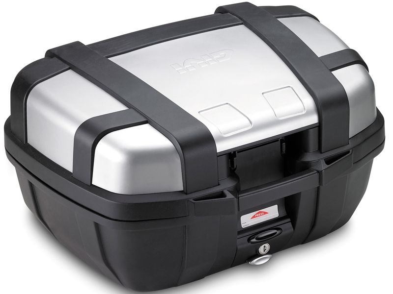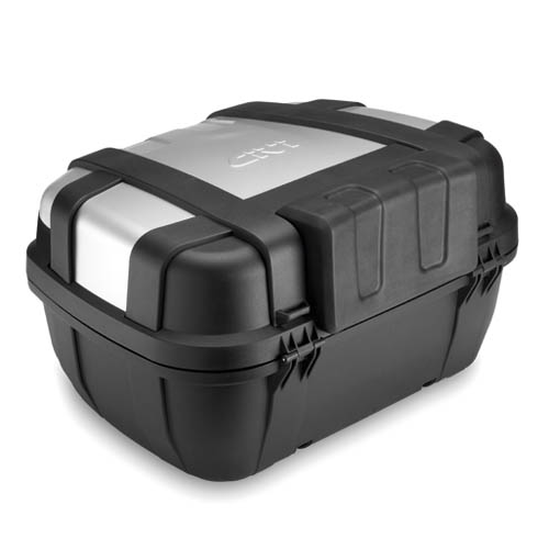 Maleta Givi TRK52N Trekker Monokey acabado en aluminio. Amplia maleta con sistema de fijación Monokey que completa la gama Trekker. Permite el alojamiento de dos cascos abatibles. Está realizada con tecno-polímeros reforzados con fibras de vidrio que garantiza una notable rigidez estructural. Está equipada con una cubierta realizada en aluminio pintado negro anodizado para resistir a los agentes atmosféricos. Volumen: 52 litros. Dimensiones: Ancho 600 mm x Profundo 315 mm x Alto 460 mm. Carga máxima: 10 Kg.