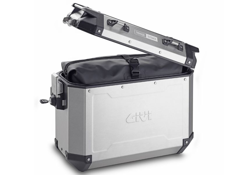 Maleta lateral Givi Trekker Outback OBKN37AL 37 litros (Posición Izquierda). Trekker Outback es la primera maleta de Givi realizada enteramente en aluminio y diseñada para los amantes de la aventura. Trekker Outback side-cam cuenta con todas las características necesarias para aportar una gran experiencia en ruta y una facilidad de uso sin precedentes: gracias a su estructura de alumino y a su innovador sistema Monokey-Cam Side (Patent Pending) destaca por su óptima resistencia a los impactos y a los esfuerzos de las rutas más extremas. Una sola llave controla los sistemas de apertura y cierre de las maletas, adémas del enganche y desganche de la moto. El diseño en líneas geométricas ofrece una óptima capacidad de carga y la completa apertura de su panel superior (tapa) convierte a este modelo en indispensable para largos viajes. Para fijar las maletas Trekker Outback con el sistema Monokey® Cam-Side son necesarios los anclajes tubulares PL_ _ _CAM / PLR_ _ _CAM (de 18mm de diámetro) no incluidos.