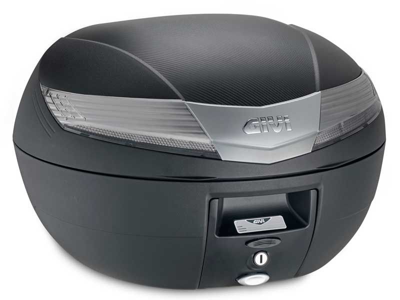 Maleta Givi V40NT Monokey (Negro) con catadriópticos ahumados. La maleta Givi V40 es la última incorporación a la gama de maletas Monokey y cuenta con capacidad para albergar un casco integral. La maleta Givi V40 cumple con las expectativas de los usurios de moto o scooter que buscan una maleta intermedia práctica, funcional y económica pero con sistema Monokey. La maleta Givi V40 Monokey posee un diseño moderno y gracias a su sistema de cierre Security Lock, permite cerrar la tapa superior con solo hacer una leve presión. Dimensiones Givi V40: 530 mm (ancho) x 440 mm (profundo) x 340 mm (alto).