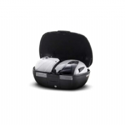Maleta Shad SH45 Negro. Nueva maleta topcase Shad SH45 de gran capacidad y que destaca por ser muy práctica, compacta y moderna. Gracias a la tapa desmontable en la zona superior de la maleta, se puede reemplazar o personalizar con diferentes colores (Change Colour System). El sistema Press Lock System, facilita el cierra de la maleta (con una leve presión), además le proporciona mayor seguridad y comodidad. Cuenta con capacidad para albergar dos cascos integrales. Pletina D1B40PA incluida de serie. Carga máxima autorizada por el fabricante de 6 Kg. Volumen: 45 litros. Dimensiones: 56 cm (ancho) x 31 cm (alto) x 41 cm (profundo).