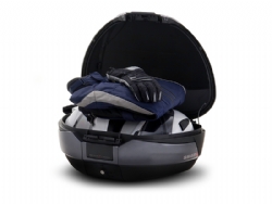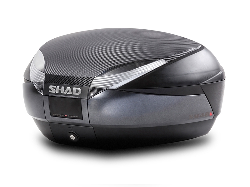 Pack Maleta Shad SH48 Negro/Gris oscuro con tapa Carbono y con respaldo D0B48306R. Shad crea la maleta SH48, un producto de gama alta, con todas las exigencias del mercado y las máximas prestaciones. Con la máxima capacidad (2 cascos integrales grandes más equipo) y peso mínimo (3,7kg) para dar comodidad de transporte y reducir las vibraciones de los soportes y el chasis. Incorpora como novedad la nueva tapa de carbono, una innovación exclusiva de Shad para el SH48. La maleta ofrece como accesorio una doble riñonera confortable que ofrece más seguridad y mayor confort. Su parte superior e inferior la convierten en un accesorio muy útil y completo. Es la única de estas características existente en el mercado. Parrilla D1B591PA incluida de serie. Carga máxima autorizada de 8 Kg. Dimensiones: 61 cm (ancho) x 31 cm (alto) x 46 cm (profundo).