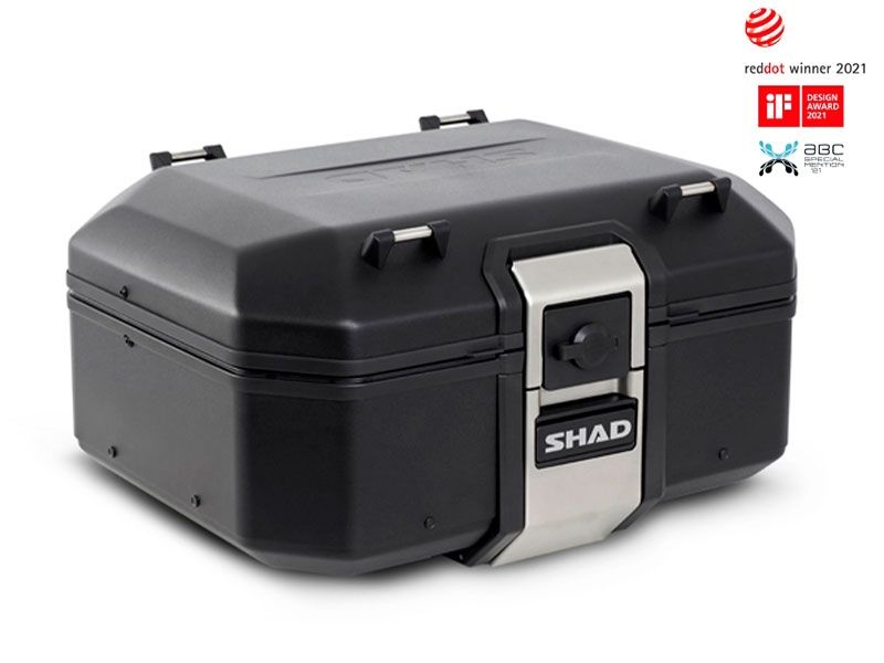 Maleta Shad TR37 Terra Black Edition D0TR37100B. La maleta top case Shad TR37 D0TR37100B Terra Black Edition con capacidad de 37 litros. Está fabricada con una aleación especial de aluminio, con grosor específico para ofrecer unos niveles excepcionales de ligereza y resistencia. Esta maleta nos ofrece un diseño basado en la integración aerodinámica con el propósito de minimizar las turbulencias ejercidas por el viento cuando circulamos a alta velocidad. El innovador sistema de cierre integrado "Terra Lock System" (pendiente de patente), permite al motorista, que con solo una mano, pueda abrir y cerrar, fijar y quitar la maleta Terra rápidamente. El sistema "Terra Lock System" que además cuenta con un asa retráctil integrada, es muy seguro y resistente, gracias a su estructura de acero inoxidable AISI 304 de grado industrial.