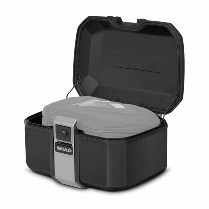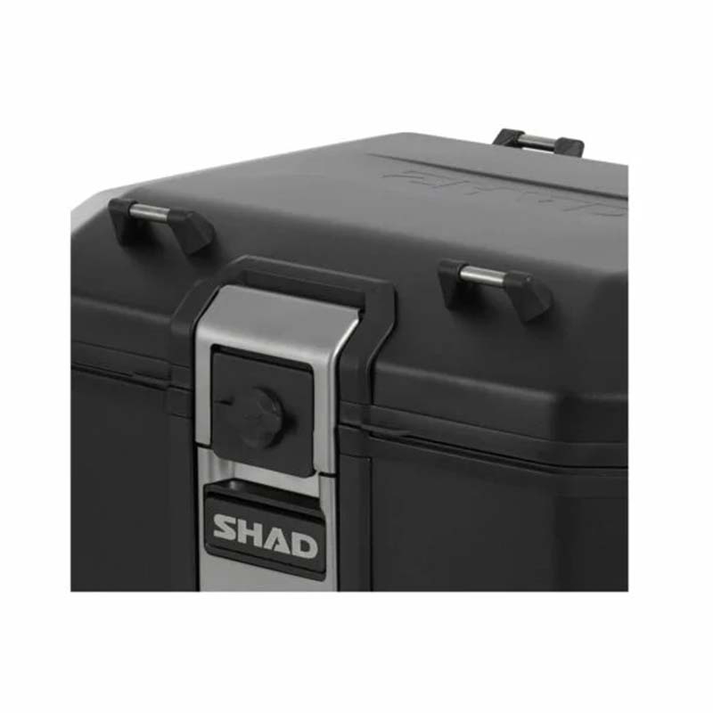 Maleta Shad Terra TR55 D0TR55100B Blak Edition. La maleta top case Shad Terra TR55 D0TR55100B con capacidad de 55 litros, suficiente como para albergar dos cascos modulares. Está fabricada con una aleación especial de aluminio, con grosor específico para ofrecer unos niveles excepcionales de ligereza y resistencia. Esta maleta nos ofrece un diseño basado en la integración aerodinámica con el propósito de minimizar las turbulencias ejercidas por el viento cuando circulamos a alta velocidad. El innovador sistema de cierre integrado "Terra Lock System" (pendiente de patente), permite al motorista, que con solo una mano, pueda abrir y cerrar, fijar y quitar la maleta Terra rápidamente. El sistema "Terra Lock System" que además cuenta con un asa retráctil integrada, es muy seguro y resistente, gracias a su estructura de acero inoxidable AISI 304 de grado industrial.