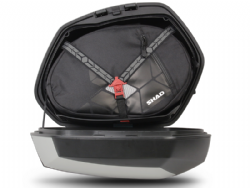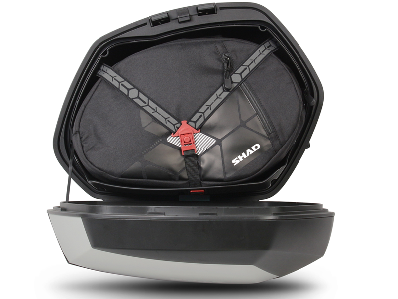Maletas laterales Shad SH35 D0B35200 Aluminio. Las nuevas maletas SH35 sidecase de Shad destacan por su innovador, resistente y a la vez funcional diseño. En comparación con otras maletas laterales de aluminio del mercado, las maletas Shad SH35 ofrecen mayor capacidad y mayor ligereza. Sus formas marcan tendencia y ofrecen un diseño muy elegante, sofisticado y vanguardista destacando sus líneas totalmente aerodinámicas. La fijación de la maleta es muy segura y rápida gracias al uso del ya conocido sistema de fijación 3P System (utilizado con las maletas SH23 y SH36). La SH35 de Shad incorpora un nuevo marco estructural que proporciona mayor estanqueidad, rigidez y ligereza. El marco Incluye un doble perfil y dentro de ellos, se sitúa un ribete de goma con forma piramidal, convirtiéndose en un laberinto para el agua, que es conducida hasta la base, donde el vierteaguas se encarga de desaguarla. Además incluye una bandeja interna, sujeción elástica y la posibilidad de poder personalizarla con diferentes colores, gracias a la tapa desmontable reemplazable (de venta por separado). Los usuarios también pueden añadir una bolsa interna perfecta para el transporte de equipaje fuera de la moto. Las maletas laterales Shad SH35 combinan perfectamente con el top master SH59X.