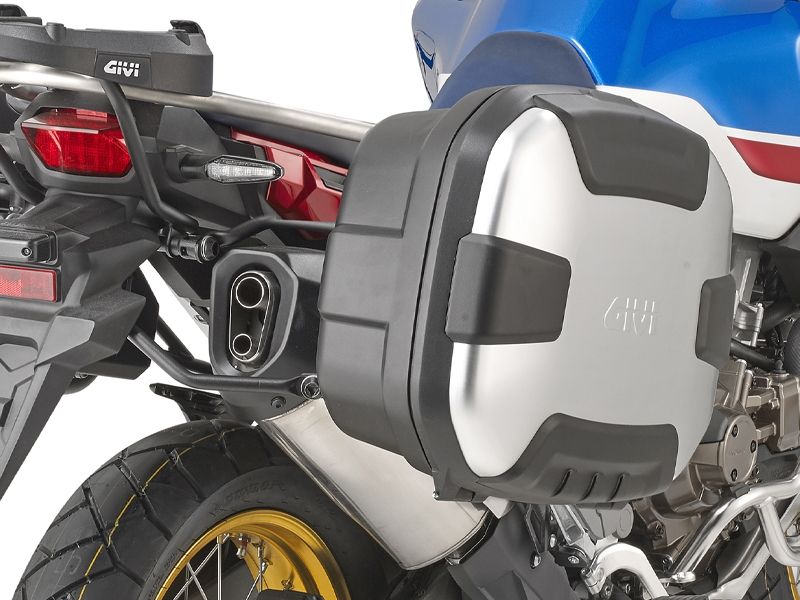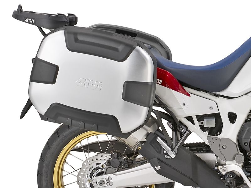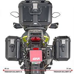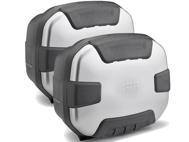 Maletas laterales Givi TRK35N Trekker Monokey (TRK35PACK2) (acabado en aluminio anodizado). Nuevas maletas laterales de moto Givi TRK35 Trekker Monokey con capacidad de 35 litros (por cada unidad), un diseño innovador y detalles de alta calidad. Las TRK35 (TRK35PACK2) están realizadas principalmente en polipropileno resistente e incorporan un panel de aluminio que además de ofrecer una protección adicional contra los impactos, también garantiza un mayor impacto estético. Las maletas laterales Givi TRK35 están dotadas del sistema de fijación Monokey® que permite la apertura y el desenganche del portamaletas con la misma llave y con una cerradura única. Son compatibles con los soportes laterales tubulares PL_ _ _, PLR_ _ _, PLO_ _ _, PLOR_ _ _ (se adquieren por separado). Juego de maletas Trekker 35 se sirve con la misma llave; Incluye un tercer bombín con la misma numeración de llave que el del juego de maletas.
