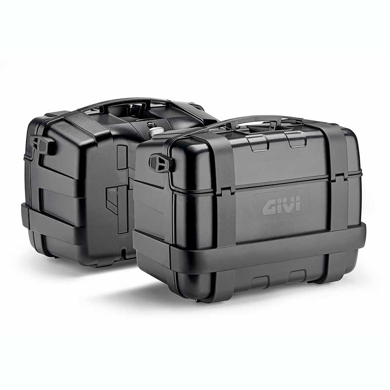 - 2 maletas laterales Givi TRK46B Trekker Black Line de 46L, con la misma llave para abrir y cerrar ambas.