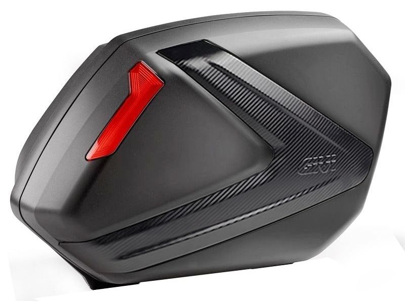 Maletas laterales Givi V37NN Monokey Side (inserción look carbono y catadióptrico rojo). La nueva maleta Givi V37 de forma compacta y aerodinámica es la evolución de la súper ventas V35. Este juego de maletas lateralas cuenta con una capacidad total de 37 litros y ofrece un diseño diseño más estilizado, elegante e innovador que el de su predecesora. La ergonomía también es un punto clave en la V37, ya que permite al pasajero colocar las piernas cómodamente para un viaje más placentero.